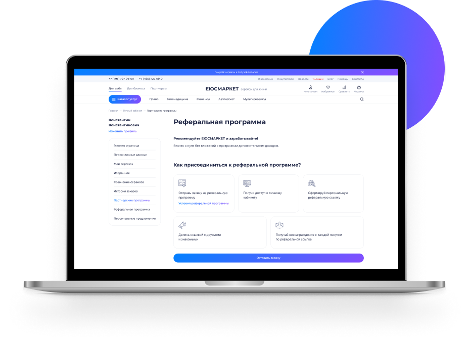 • Каждый пользователь может стать участником реферальной программы, оставив заявку